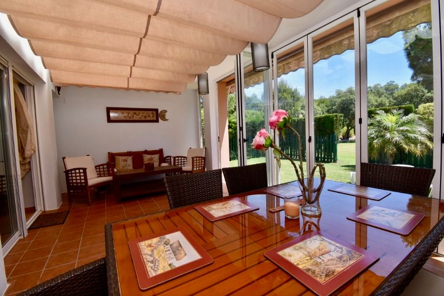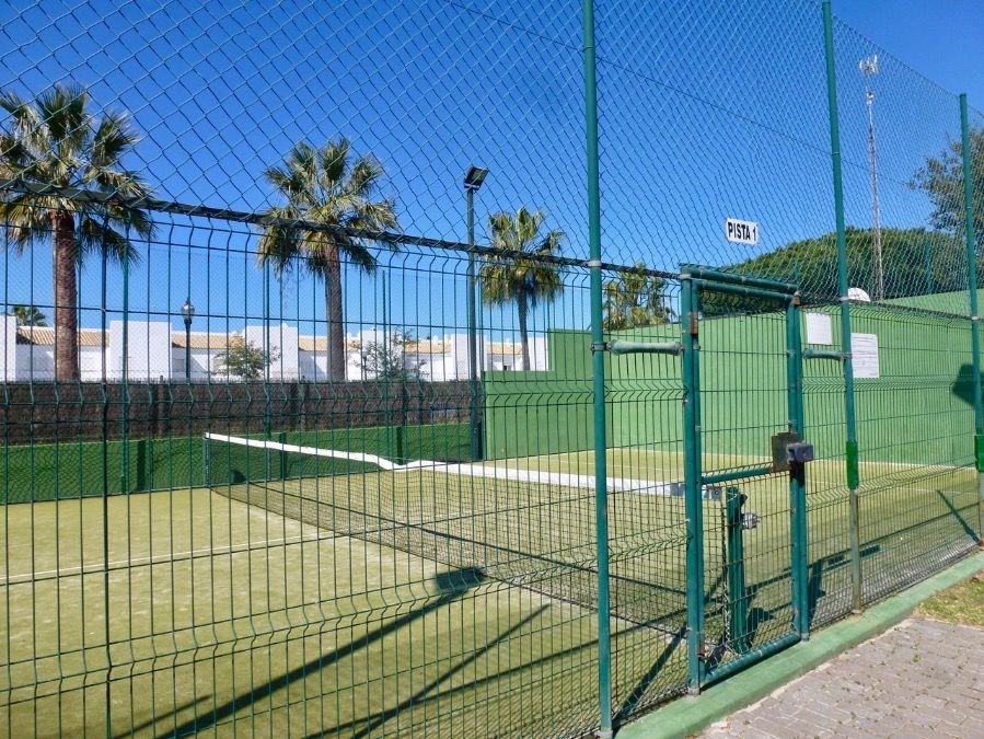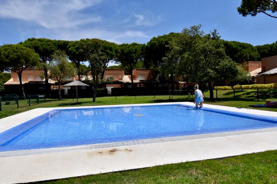 Maison avec piscine commune à Chiclana de la Frontera, Costa de la Luz, Espagne pour 6 personnes. La maison est située dans une zone urbaine de plage, proche d'un court de tennis et à 2 km de la plage de La Barrosa.