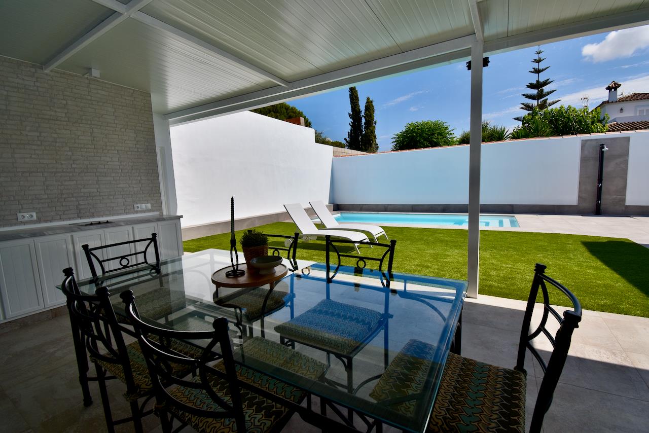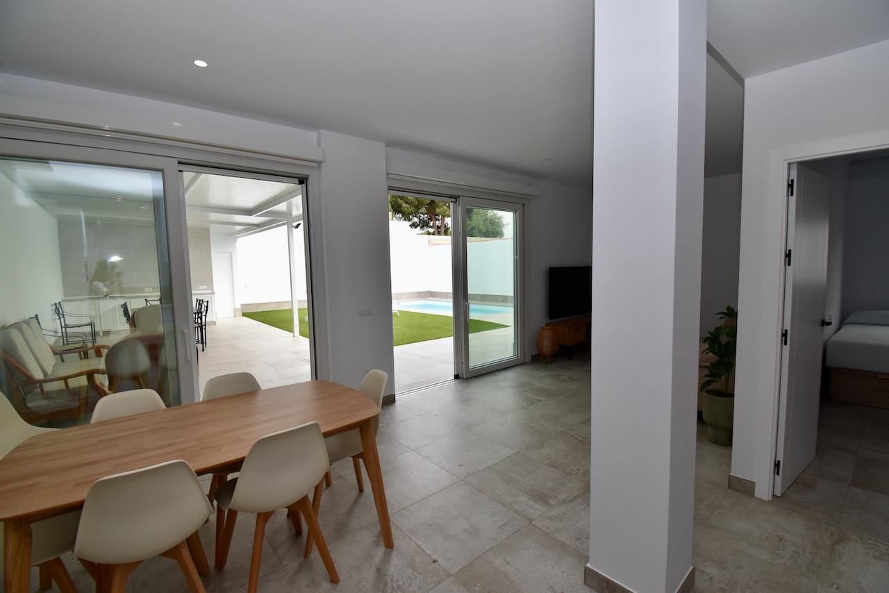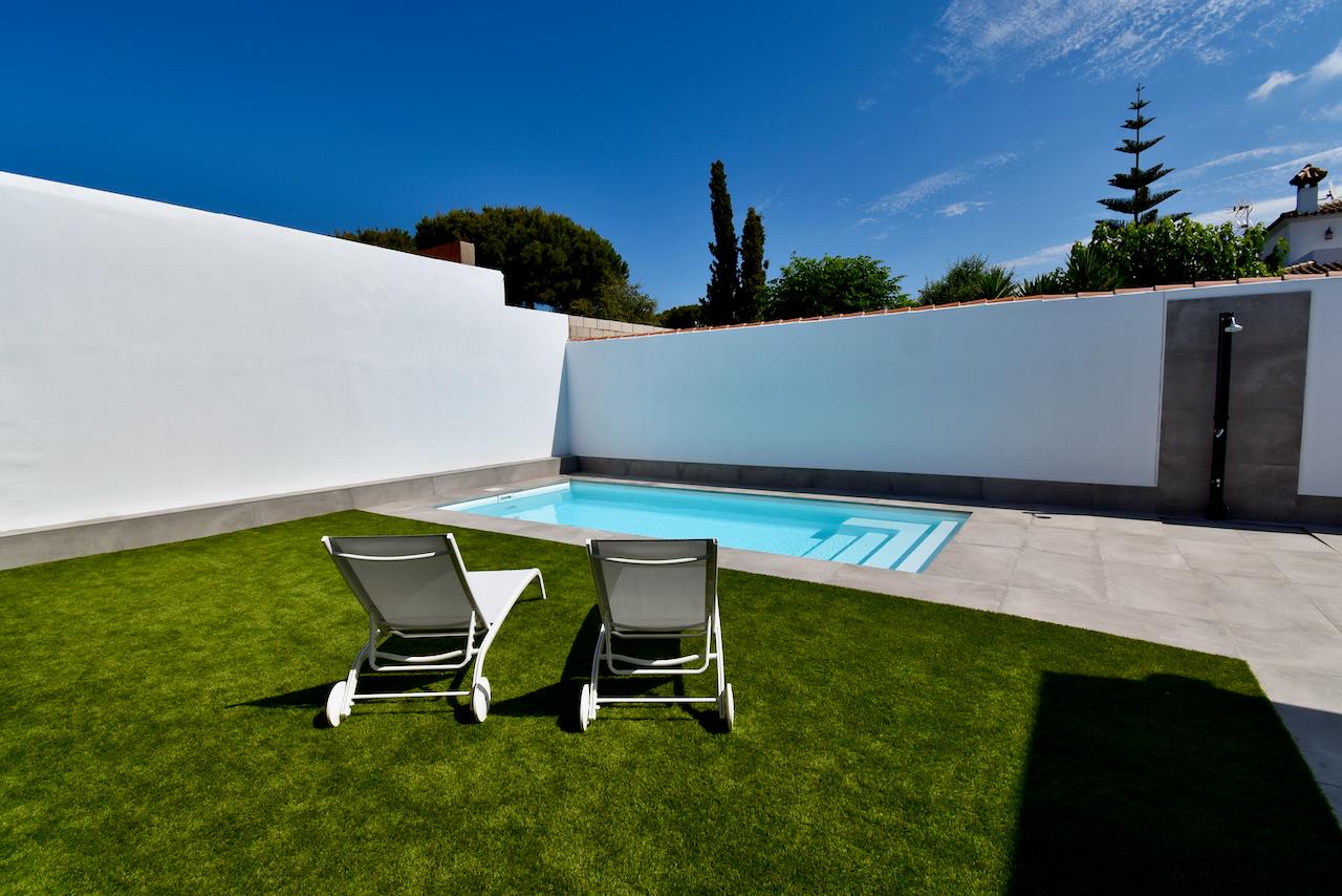 La villa dispose de 3 chambres et 3 salles de bains, réparties entre l'hébergement principal et une maison de jardin. L'hébergement offre un jardin avec pelouse. La proximité de la plage, des commerces, des activités sportives, des installations de divertissement, des lieux de sortie, des sites touristiques et de la culture en fait une villa idéale pour passer vos vacances en Espagne en famille ou entre amis.