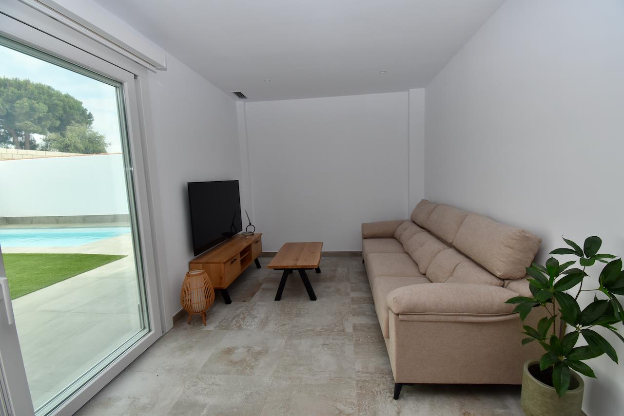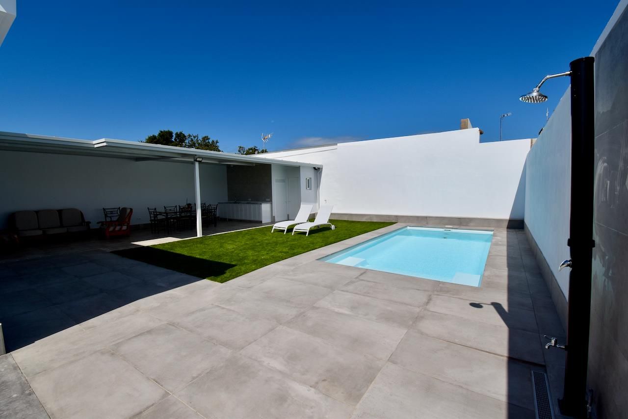 Villa moderne et confortable à Chiclana de la Frontera, Costa de la Luz, Espagne, avec piscine privée pour 6 personnes. La maison est située dans un quartier résidentiel boisé et se trouve à 2 km de la plage de La Barrosa.