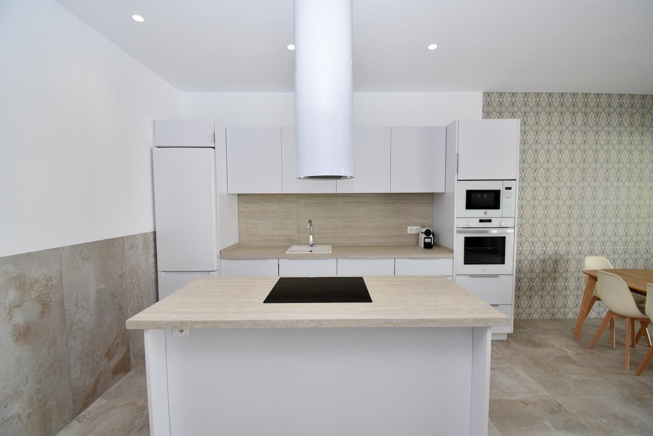 • cuisine avec plaque de cuisson électrique, four électrique, micro-ondes, lave-vaisselle, réfrigérateur-congélateur, machine à café et grille-pain