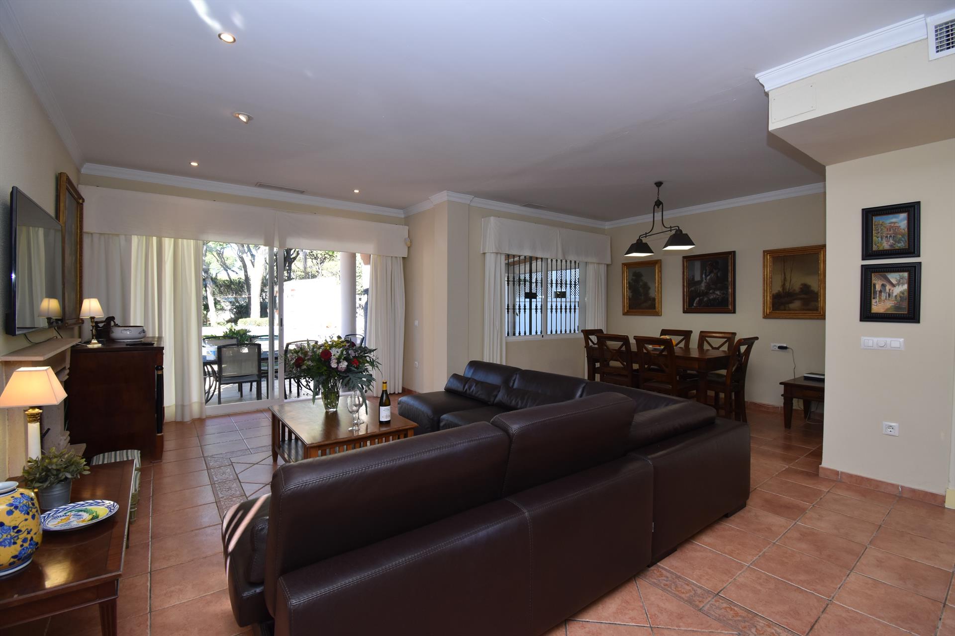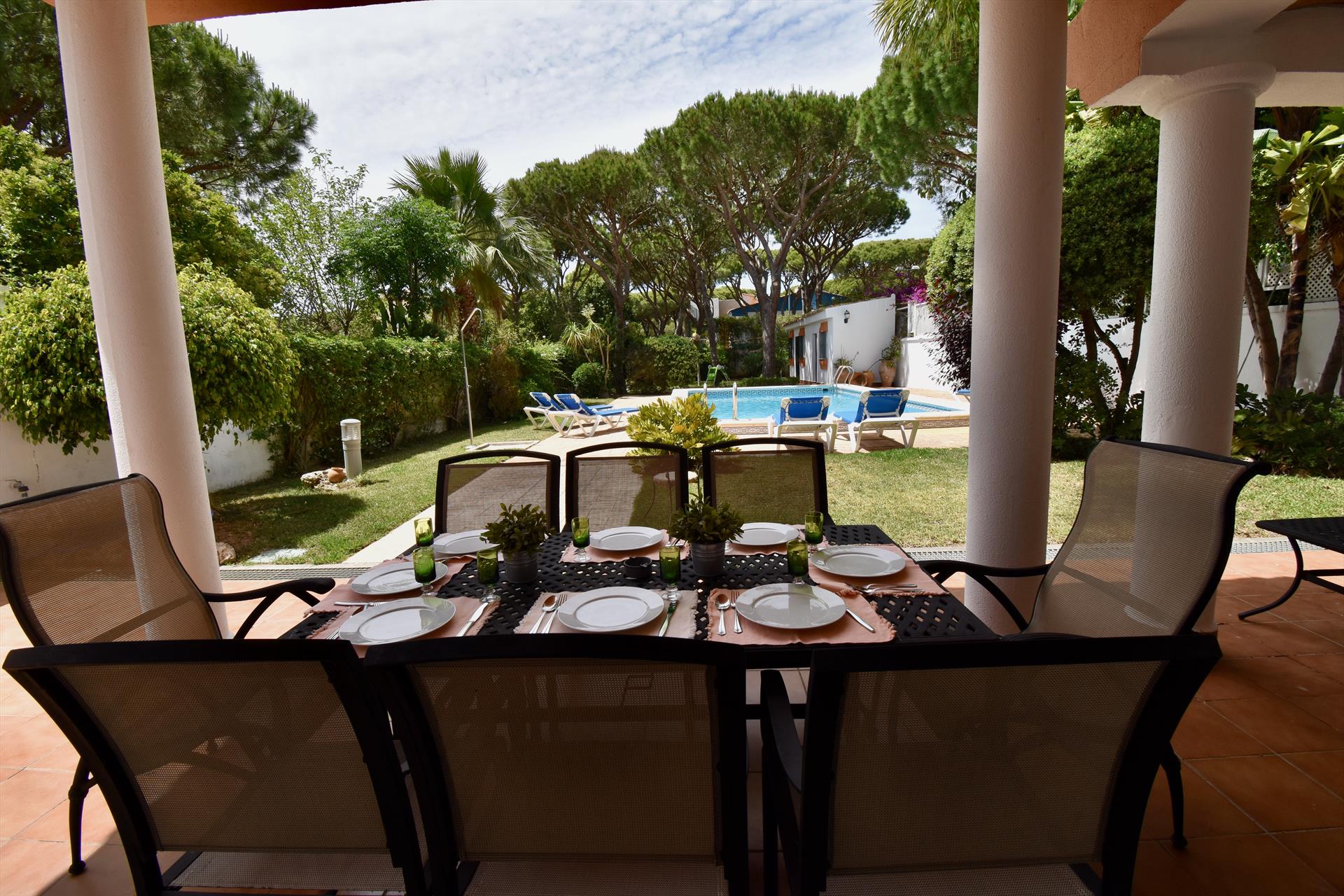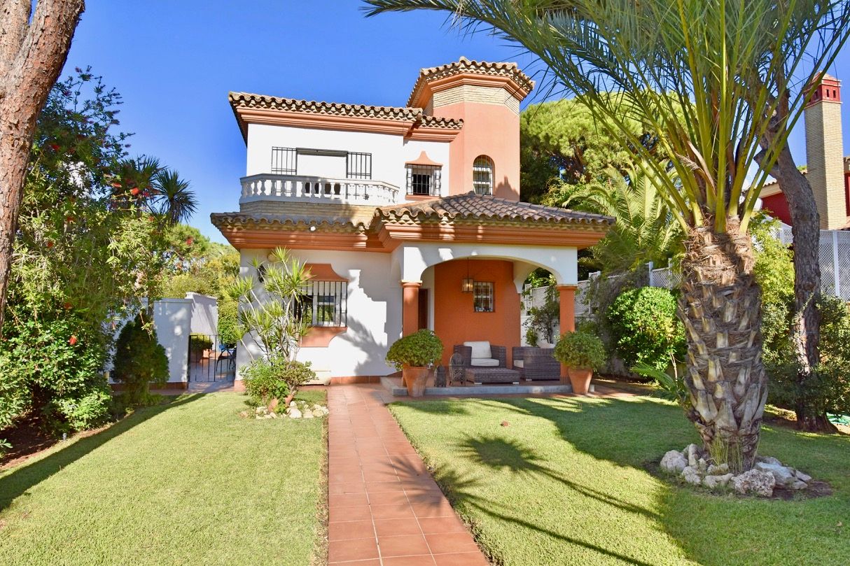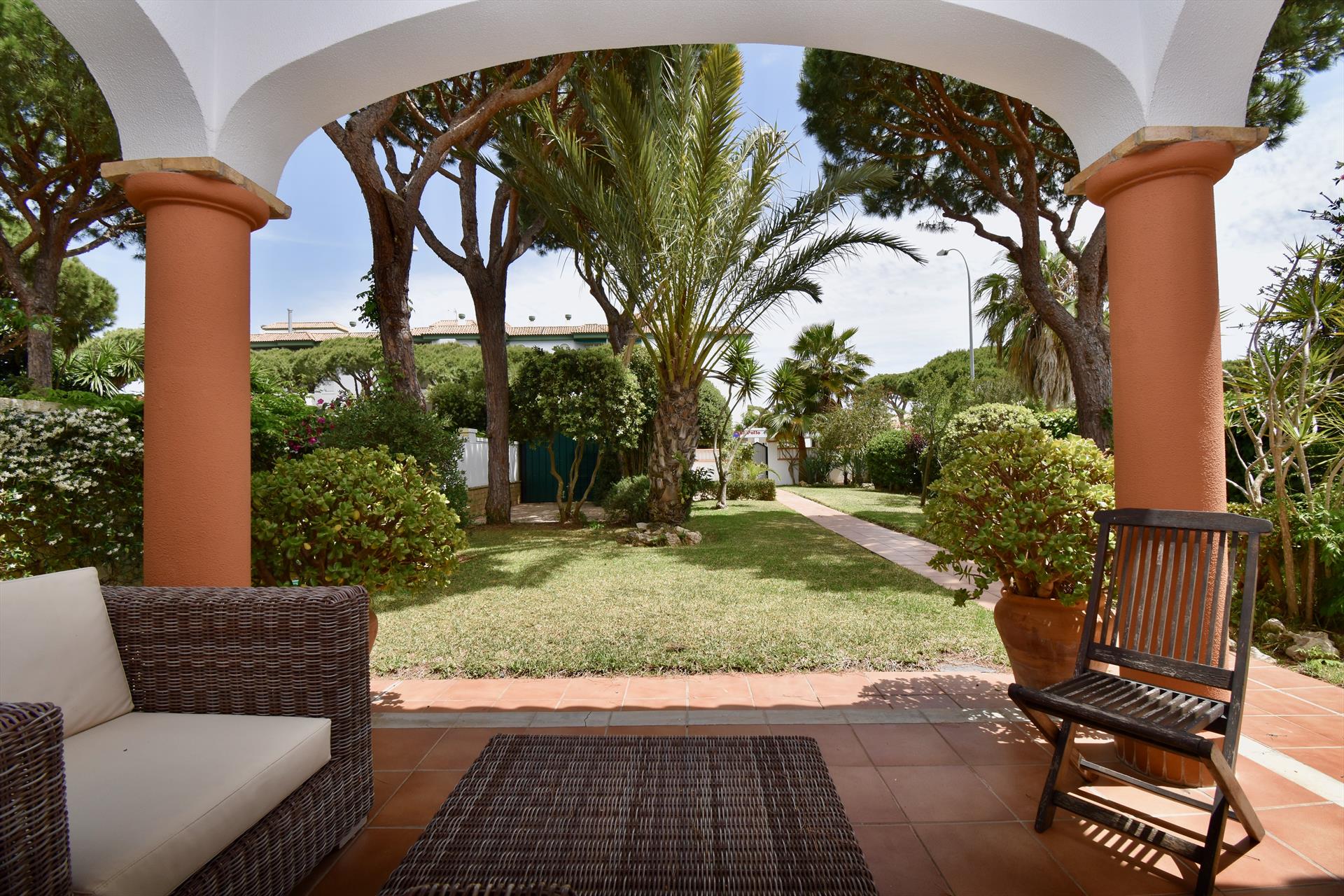 Villa classique et confortable à Chiclana de la Frontera, Costa de la Luz, Espagne avec piscine privée pour 8 personnes. La maison de vacances est située dans une région balnéaire, boisée et résidentielle, près de restaurants et bars, de magasins et de supermarchés et à 200 m de la plage de La Barrosa.