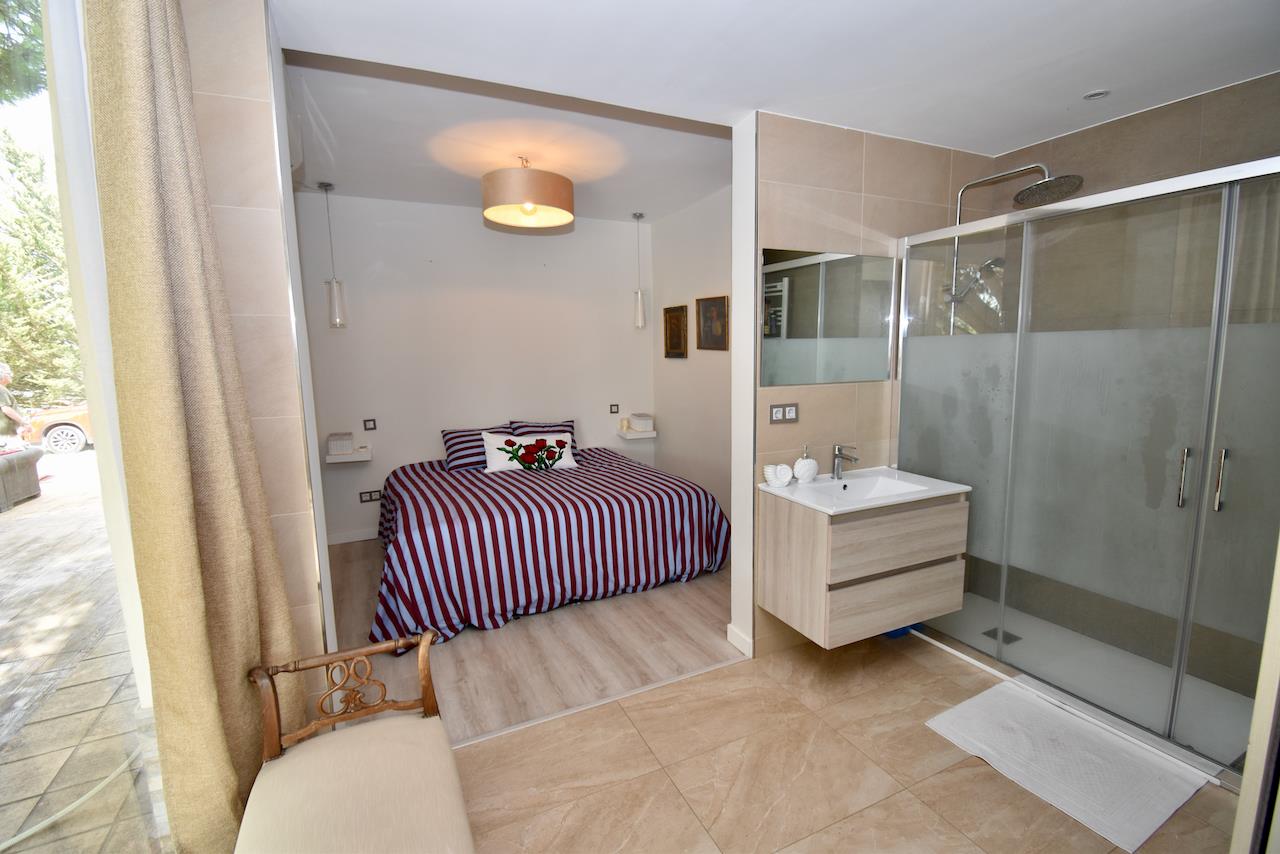 La maison comprend 3 chambres et 4 salles de bains. L’hébergement offre un jardin avec pelouse et arbres, ainsi qu'une vue sur la campagne. La proximité de la plage, des commerces et des lieux de sortie fait de cette villa un lieu idéal pour passer vos vacances en Espagne en famille ou entre amis.