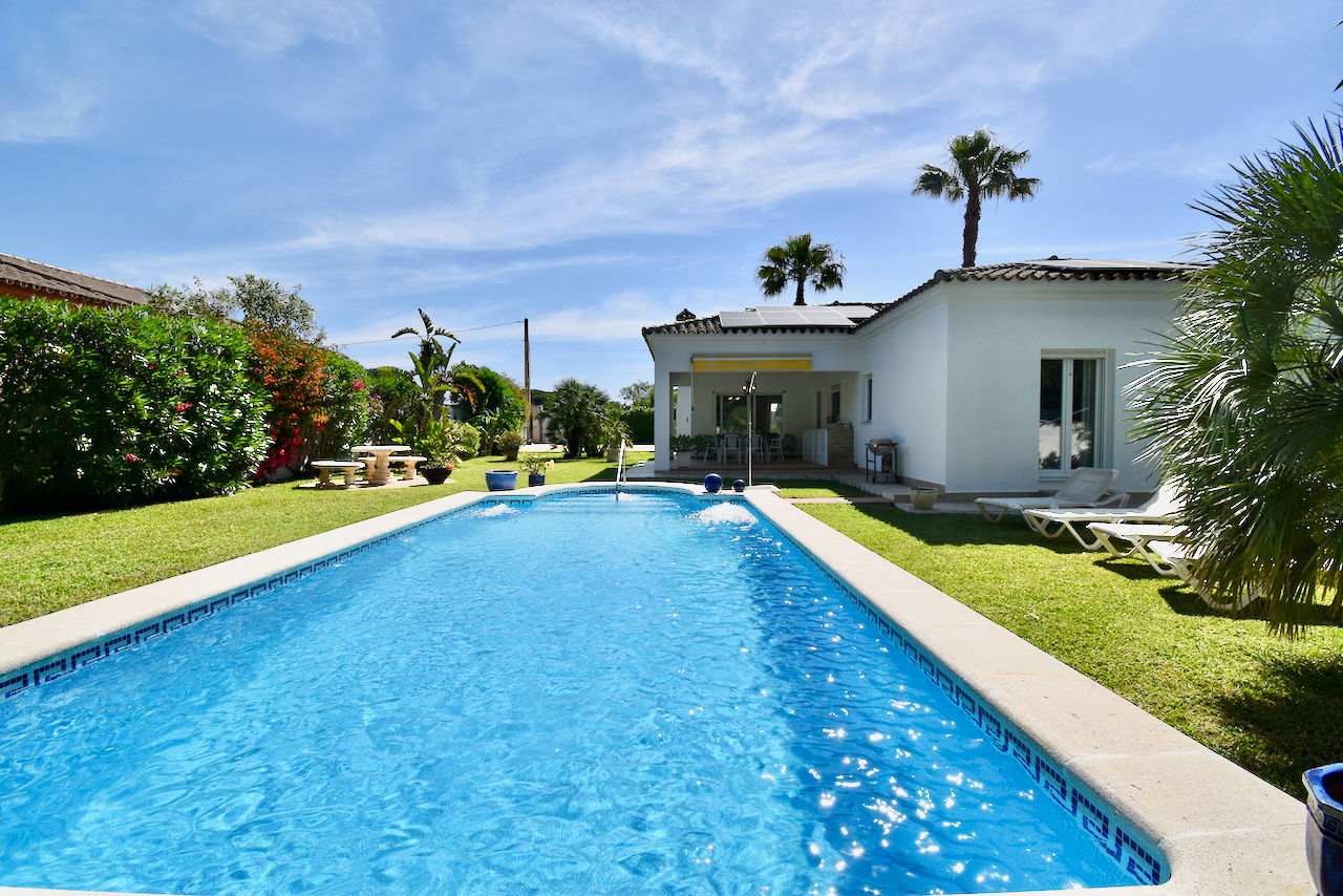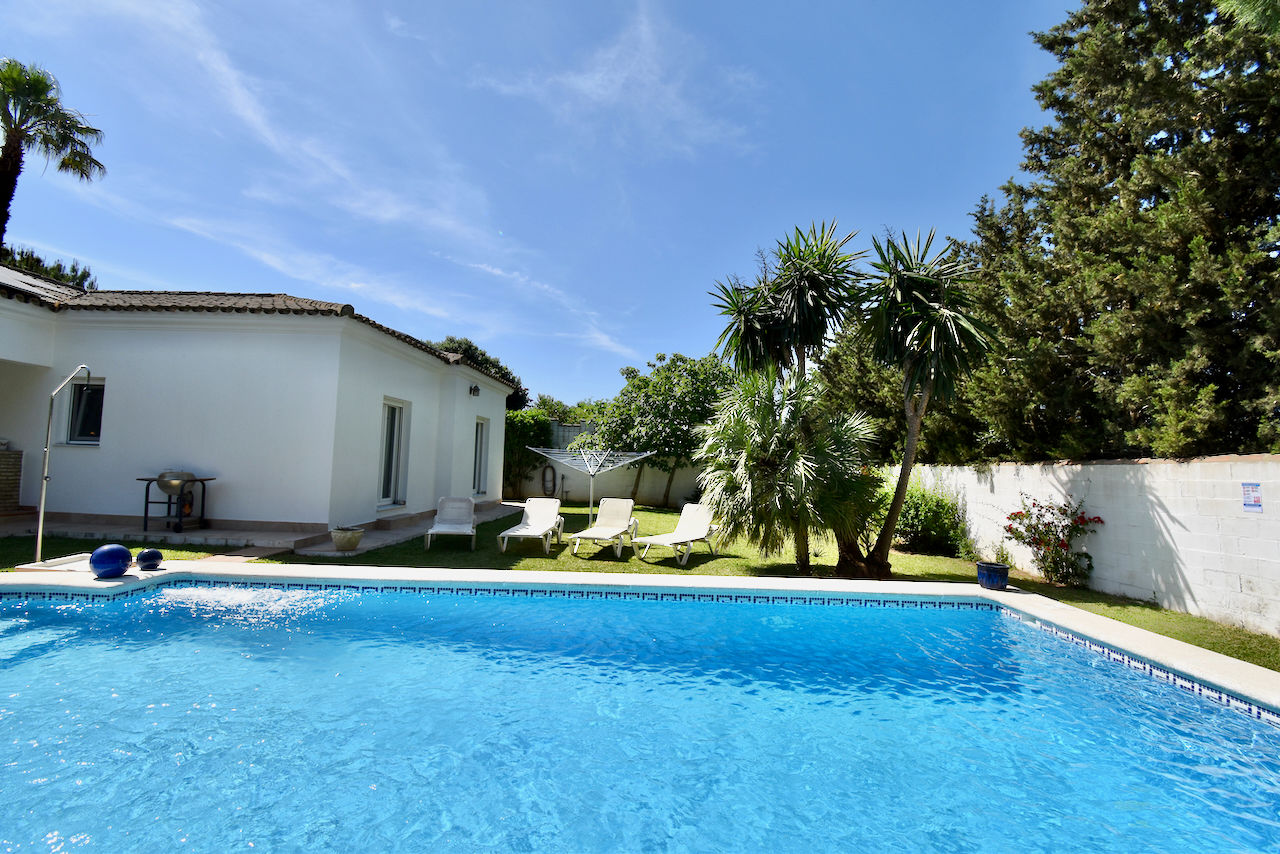 Villa moderne et confortable à Chiclana de la Frontera, sur la Costa de la Luz, Espagne, avec piscine privée pour 6 personnes. La maison est située dans une zone rurale proche de la plage.