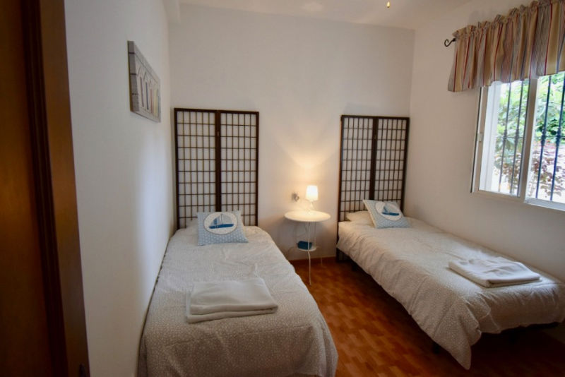 • chambre à coucher avec 2 lits simples (de 200 x 90cm) et ventilateur