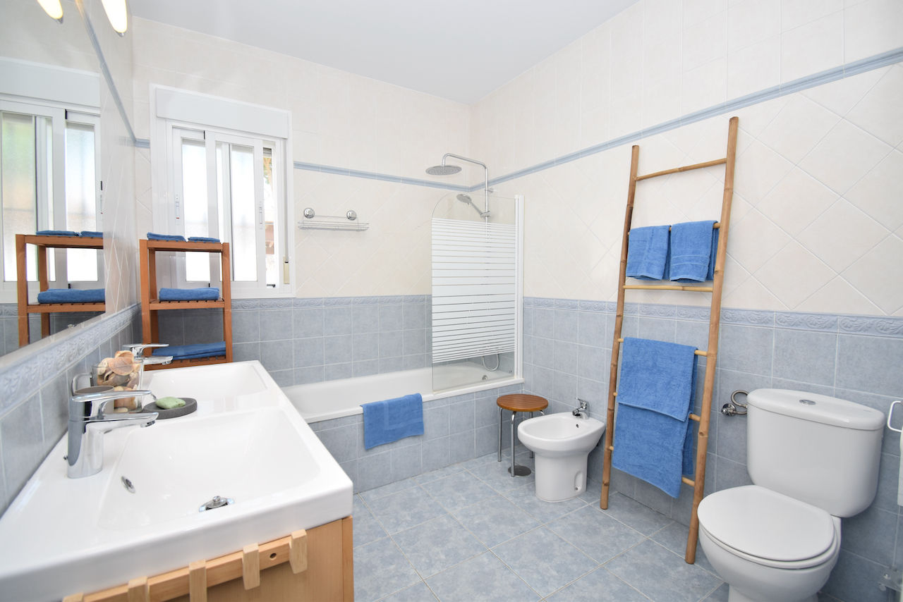 La maison de vacances a 3 chambres à coucher et 2 salles de bain. Le logement offre de l'intimité, un beau jardin avec pelouse et d´arbres et une belle piscine. Le comfort et le voisinage de la plage, d'endroits pour faire du shopping, d'activités sportives, de lieux de divertissement, d'endroits pour sortir, d'attractions et de culture rendent cette villa un logement convenable pour passer les vacances en Espagne avec votre famille ou vos amis.